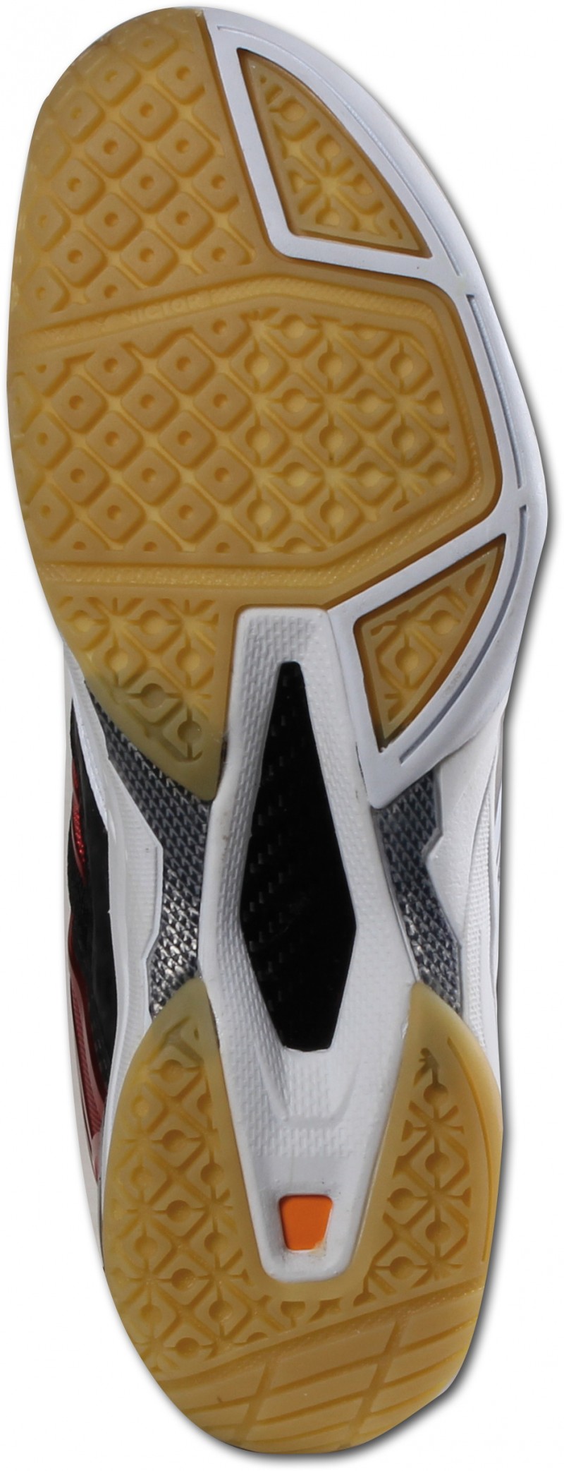 The VICTOR V-300 features a specially designed high strength elastic strap combined with an ingenious lace structure to provide the player with a comprehensive fit ensuring added protection for the feet. The innovative insole with special shaped ripples on the surface helps support anti-slip within the shoe, enhancing comfort and providing a strong foot hold. The soft foam core, integrated in the back part of the insole, absorbs the high shock intensity, providing great feeling even during high performance. The improved honeycomb structure outsole generates optimal grip for dynamic movements on the court.