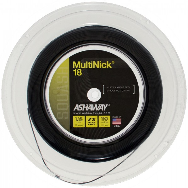 The MultiNick 18 is a new addition to the product line. This multiflament nylon string utilizes a unique polyurethane coating that bonds a sheath of high tenacity multiflament nylon fbers together in a durable and resilient matrix. A professional string with the perfect balance of power and control.